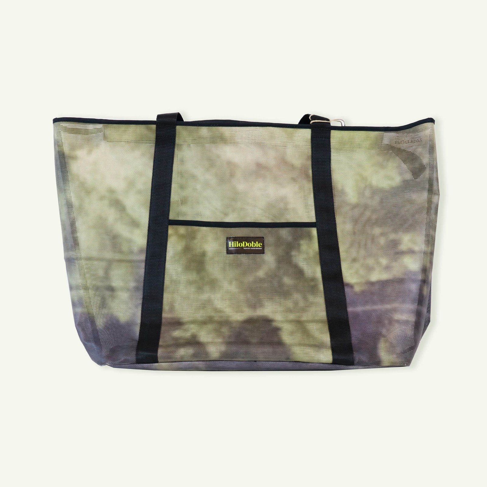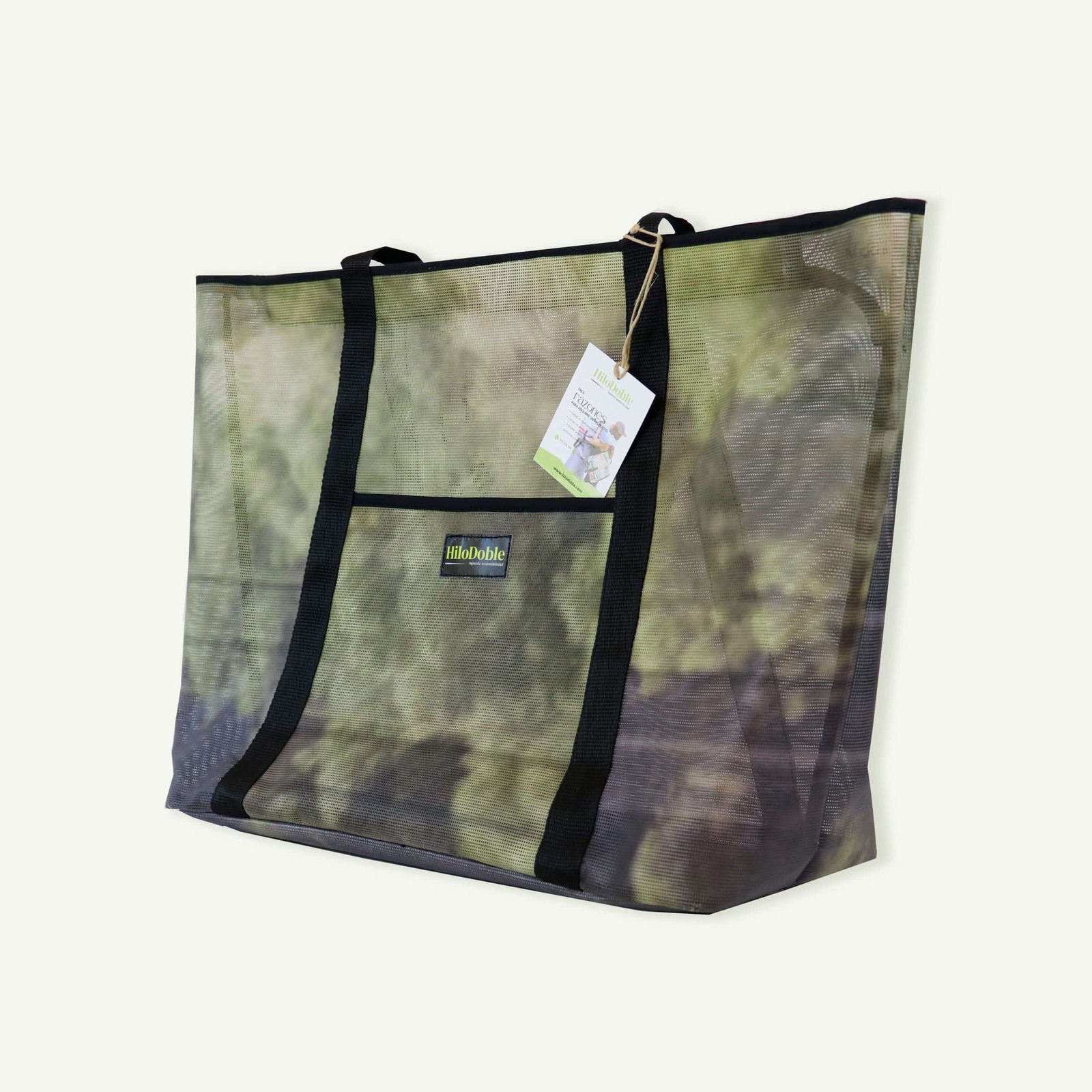 Bolso shopper confeccionado con lona microperforada reciclada.