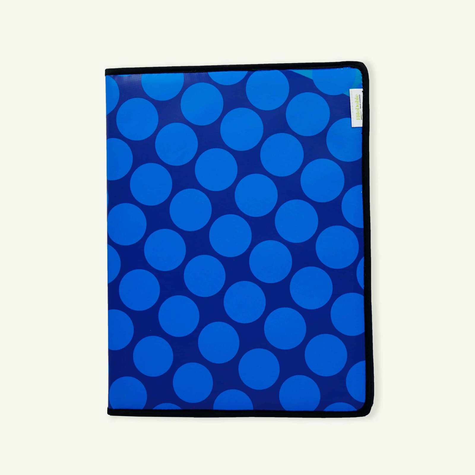 Lo que hace que este portafolios sea aún más especial es su construcción con lona publicitaria reciclada.