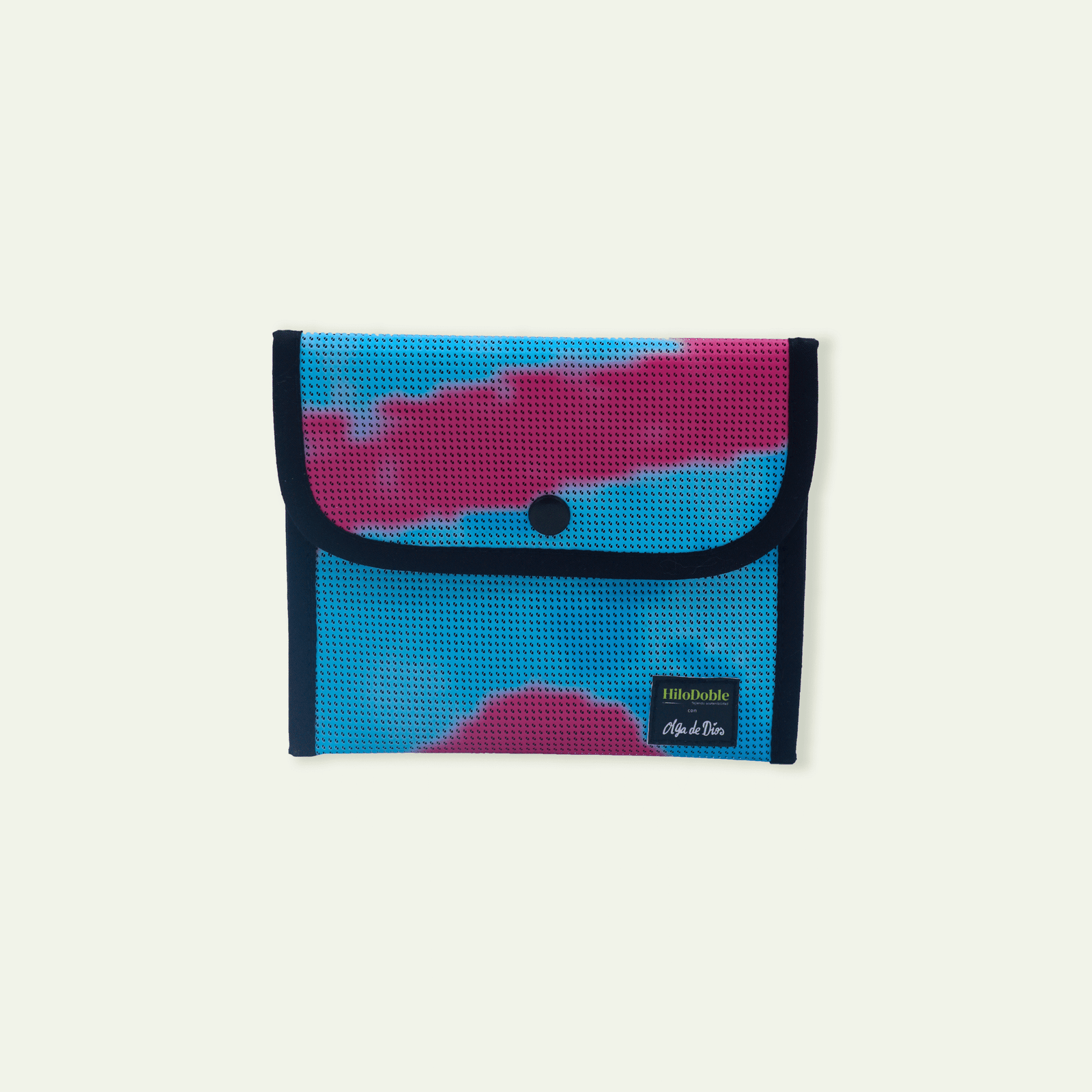 Confeccionada con lona reciclada ♻️, esta cartera versátil y ligera recoge el color y la creatividad del universo de Olga de Dios.